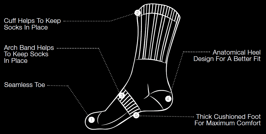 Our socks for work boots are especially designed to ensure they stay up high enough that your boots don't rub on your legs and cause irritation. Learn more below.