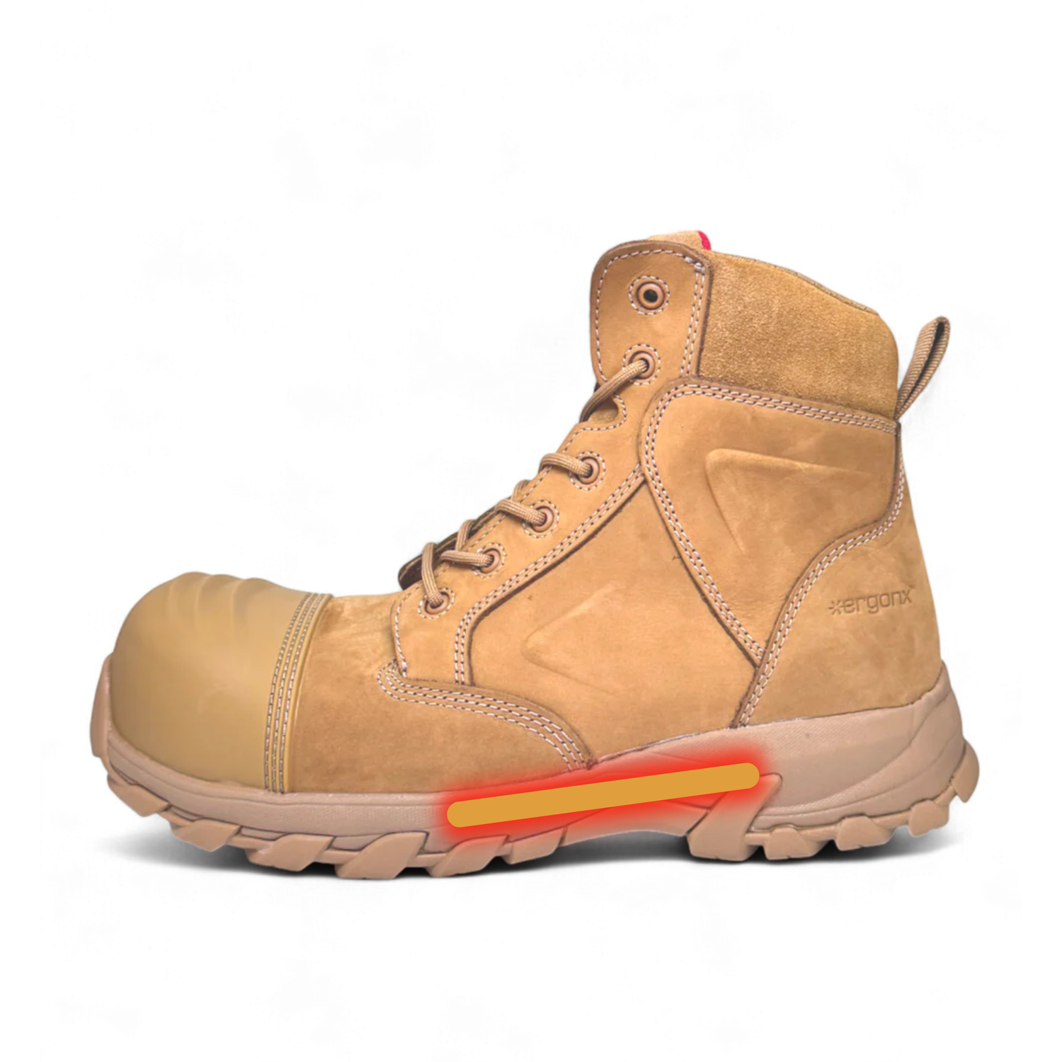 The Ergonx Work Boots Range are engeneered to work with the your foots natural biomechanics.