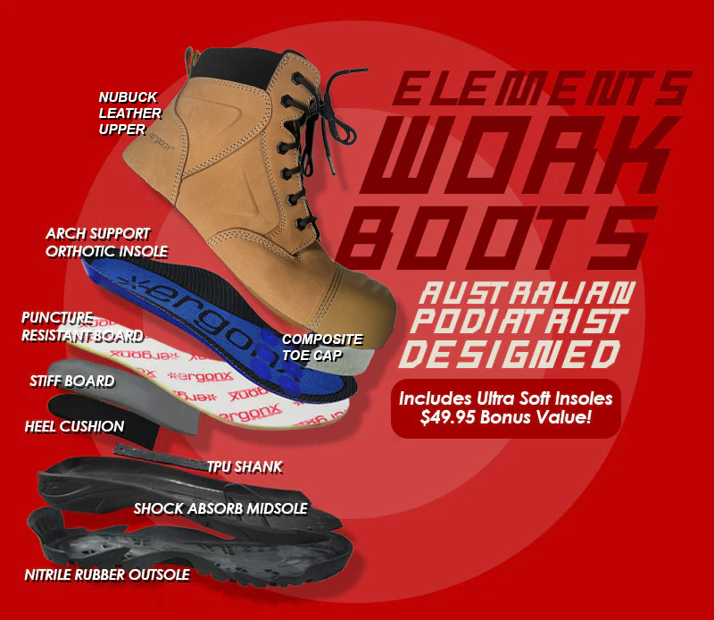 We were seeing too many people coming into our clinics suffering from pain caused by bad work boots. So we've fixed the problems and made our own range of high quality. USA Safety Standard (BMP 586124, AS 2210.3:2019, Class I S1 P HRO SRA) approved work boots.