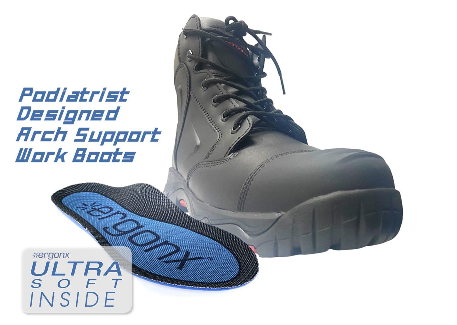 The ultra-soft arch support insole helps to further cushion the foot, reduces fatigue, and makes our work boots extremely comfortable. By supporting the arches of the feet it helps to rest the supporting ligaments and muscles of the feet.