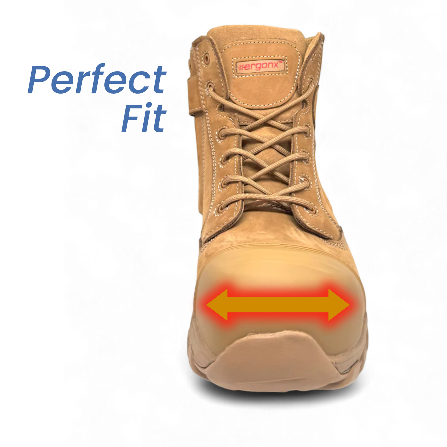 Our boots are made in a 2e fitting standard fitting but with a roomy toe area. Just like when you are fitting your shoes, the width of a work boot is very important to accommodate the toe and have the right forefoot support to prevent foot pain.